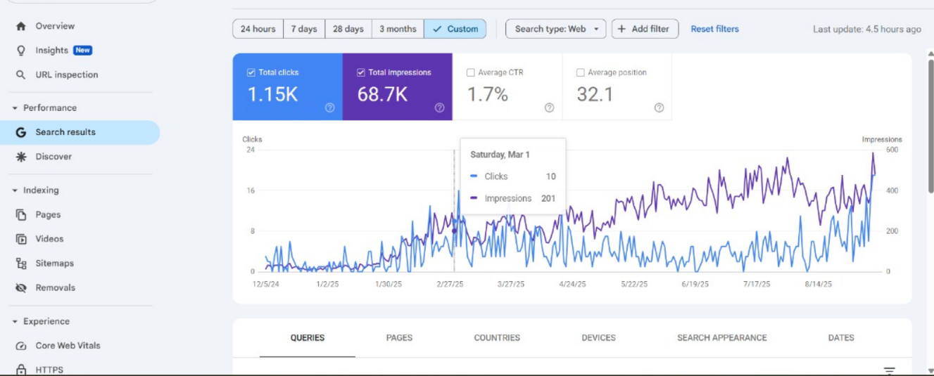 Improved website impressions and clicks using advanced on-page SEO, keyword research, and technical optimization.